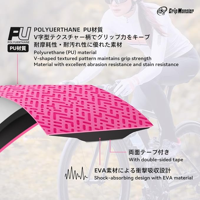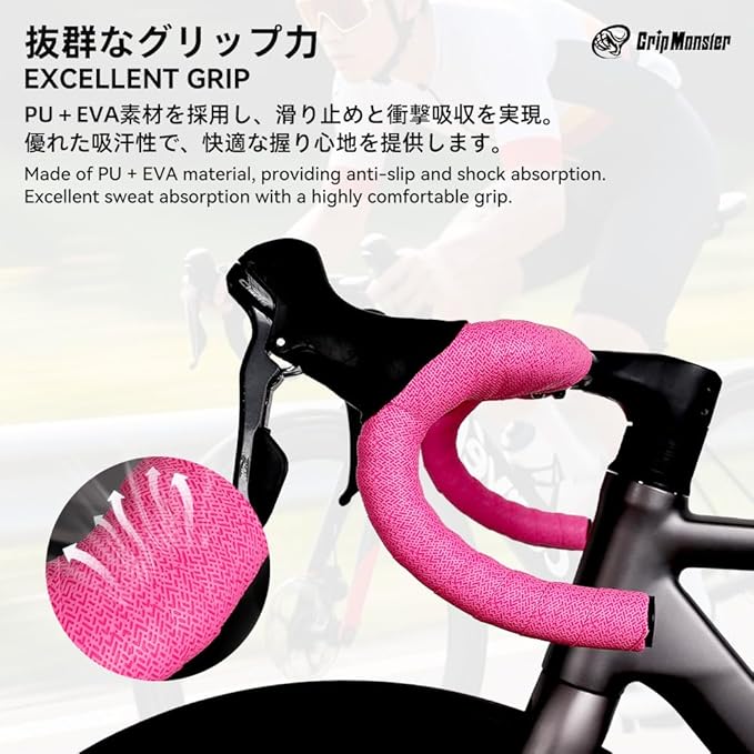 GirpMonster 自転車ハンドルバーテープ ロードバイクバーテープ ドロップハンドルテープ 特製PU素材 滑り止め 衝撃吸収 軽量柔軟 取り付け簡単 エンドテープとエンドキャップ付属 2本セット