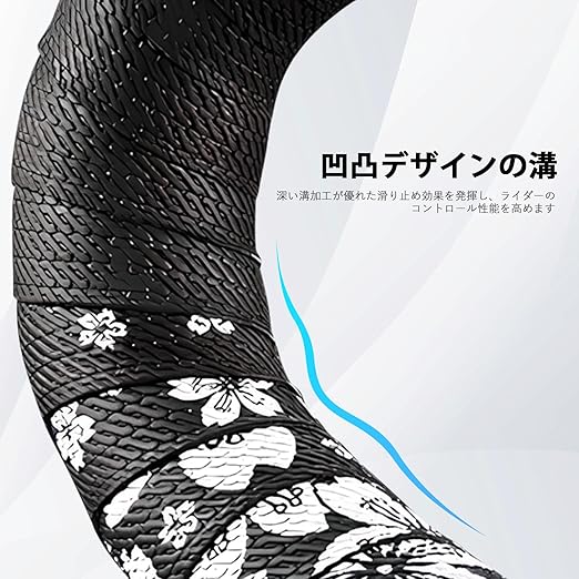 【汗や雨に強い強力グリップ】 表面に施された特殊な滑り止め加工により、汗をかいた手や雨天時の走行でも優れたグリップ力を発揮します。ハンドルが滑る不安を解消し、ダウンヒルやスプリント時でも安定したコントロールを可能にします。