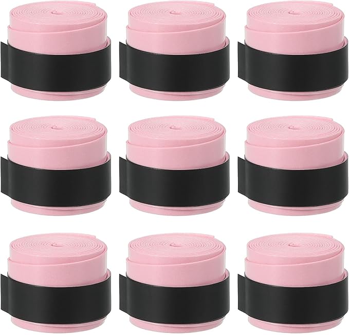 PATIKIL 43.3" テニスラケットグリップテープ 9パック オーバーグリップ 伸縮性 ある滑り止め 吸汗性 バドミン トン 釣り竿 ライトピンク
