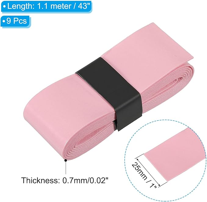 カラー:ライトピンク;素材:PU;サイズ:1.1メートル x 25mm / 43 x 1"(長さ 幅);パッキングリスト:ラケットグリップテープ9本