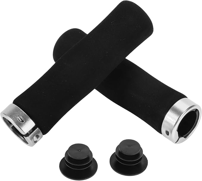 1セット 自転車ハンドルバーグリップ 人間工学に基づいた設計 スポンジ自転車グリップ シングルロックオンハンドルバーグリップ Eバイク トレッキングバイク マウンテンバイク用 シルバートーン