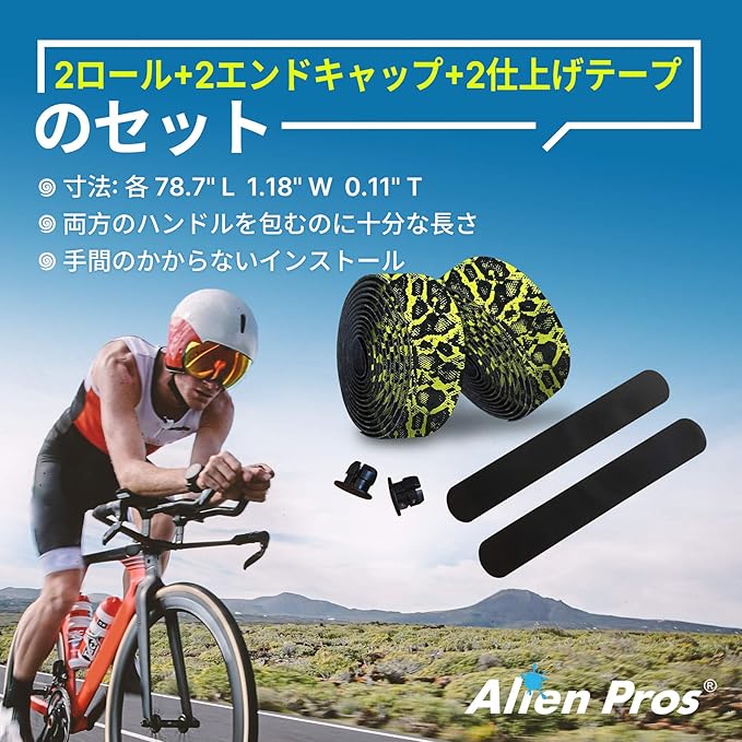 Alien Pros 自転車用炭素繊維ハンドルバーテープ(2個セット)-この自転車用ハンドルバーテープでグリップを強化-バイクに巻いて、快適に乗りこなしましょう!
