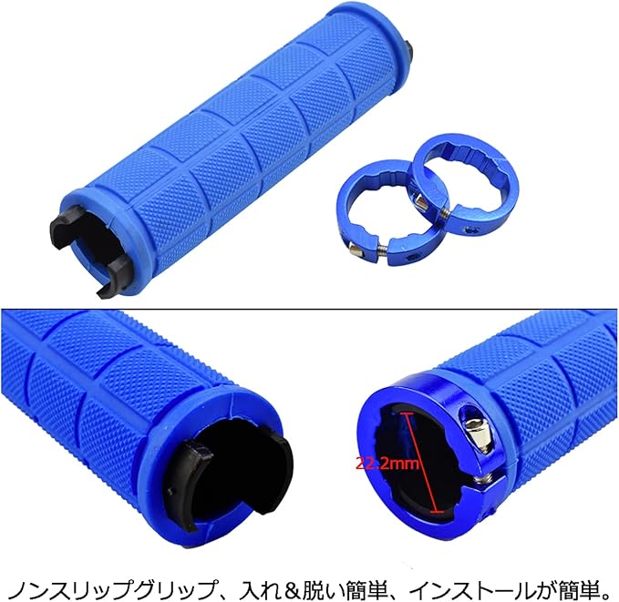 サイズ:128x33mm 対応内径:22.2mm 重量:約135g パッケージ 内容: ハンドルグリップ*1ペア 、エンドキャップ*1 ペア、 六角レンチ 1個(六角レンチ付属して、ねじを締めて取り付け可能です。)