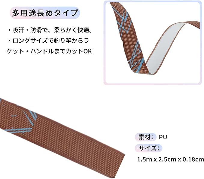 グリップテープ 1.5m 2m 釣り竿 ロングタイプ カット自由 テニス バドミントン 滑り止め 握り心地良い 自転車 野球 ラケット