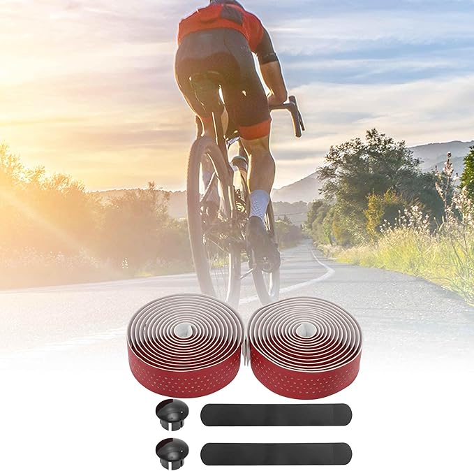 1ペア 自転車ハンドルバーテープ ロードバイク用 滑り止め 衝撃吸収ハンドルバーテープ MTB用通気性グリップテープ 長さ2.16 M レッド