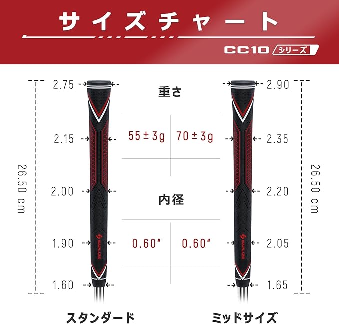 【製品規格】 クリップサイズ:標準/中型、コアサイズ:0.60"、グリップ長さ:10.60"、重量:55 3g / 70 3g