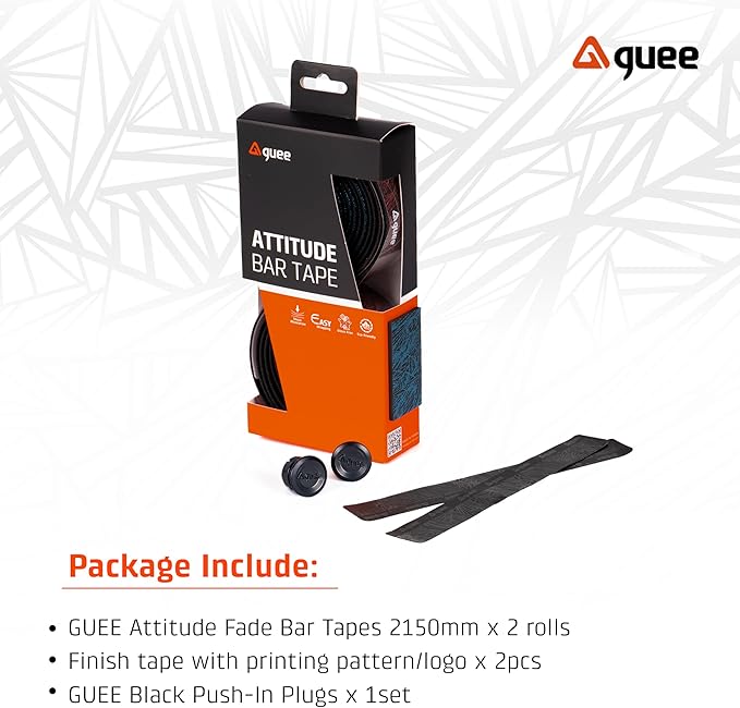 Attitude Fadeバーテープは、サステナビリティへのコミットメントに合致する環境に優しい素材でデザインされています。グラデーションカラーのユニークなパターンが特徴で、自転車のハンドルバーに鮮やかでスタイリッシュな雰囲気を添えます。グラデーションデザインは美しいだけでなく、独特でモダンな美しさを際立たせます。 Attitudeシリーズは、環境に優しく低炭素な製造プロセスとサイクリングパフォーマンスを融合させるというGueeの新たな挑戦を体現しています。Attitude Fadeは、環境への責任、パフォーマンス、そしてスタイルが完璧に融合した製品です。 Attitude Fade は、以下に挙げる特徴を備えて特別に設計されています。 ・環境に優しいTPU素材:溶剤不使用、低炭素製造プロセスで加工された環境に優しいTPU素材を採用しています。環境への影響を最小限に抑えながら、テープの耐久性と質感を確保し、優れた滑り止め効果と快適な使い心地を提供します。 ・EVAフォーム素材:テープの裏面には衝撃吸収性に優れたEVAフォーム素材を採用。ロングライドでもレジャーでも、快適で安定したハンドコントロールを実現します。荒れた路面からの衝撃や振動を効果的に吸収し、手の疲労を軽減し、スムーズな乗り心地を実現します。長距離ライドや様々な路面状況での走行に最適です。 ・滑り止めグリップ: バーテープの表面はテクスチャ加工が施されているため、濡れた状態でもしっかりとしたグリップが得られ、走行中に自信とコントロールが得られます。 ・アティテュードフェードバーテープは、虹色のフェードカラーで幾何学模様をダイナミックに表現し、どんなシーンでもあなたのバイクを際立たせます。この鮮やかなデザインは、バイクの見た目の魅力を高めるだけでなく、あなたの大胆な個性とサイクリングへの愛を体現します。 Attitude Fadeシリーズは、あらゆるライディングコンディションで最高のグリップ力を発揮するように設計されています。その粘着性と優れた耐久性は、まさにこの目的に最適です。