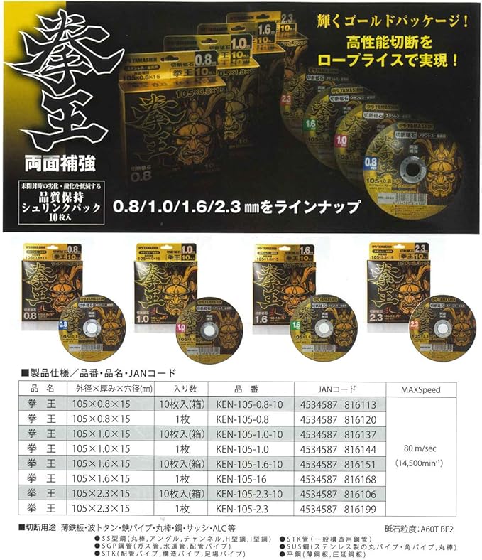 山真製鋸(Y'sGOD JAPAN) 切断砥石 拳王 KEN-105-0.8-10 105x0.8mm 10枚入