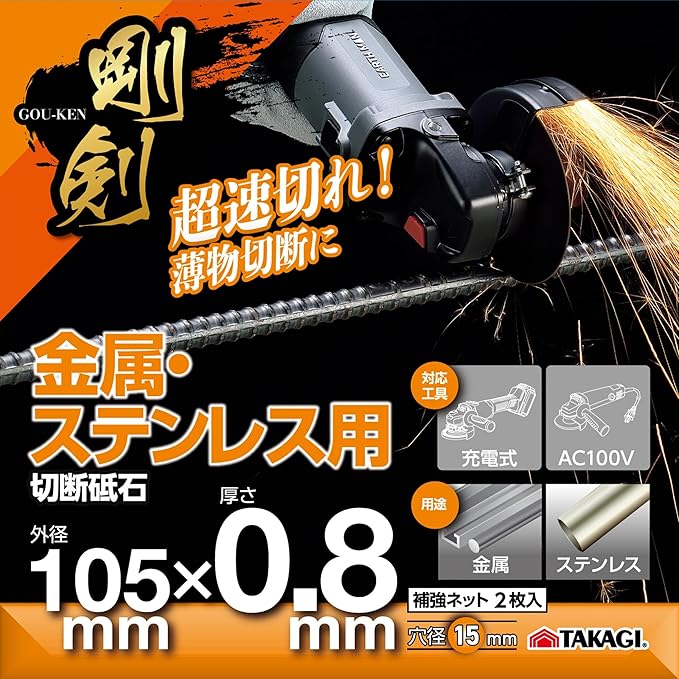 用途:金属・ステンレス、対応工具:ディスクグラインダー(充電式・AC100V)