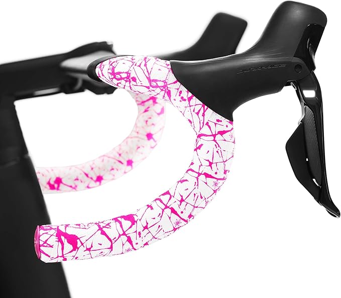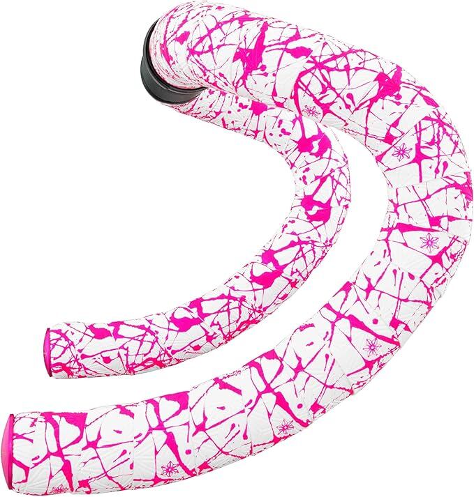 Supacaz (スパカズ) サイクリング バーテープ - Super Sticky Kush - Splat - Limited - White w/Neon Pink + Neon Pink Star Plugz