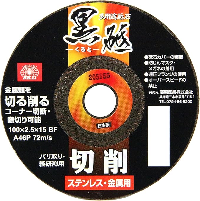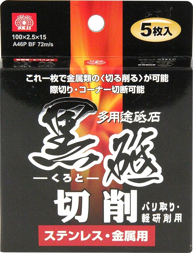 SK11(エスケー11) ディスクグラインダー用 研磨砥石 黒砥 切削用 金属・ステンレス用 5枚入 100 2.5 15mm