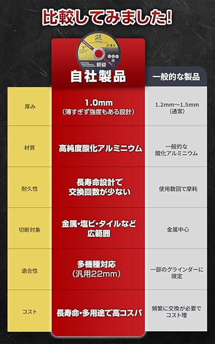 【多機種対応で汎用性抜群】 この切断砥石は、さまざまなディスクグラインダーやミニアングルグラインダーに対応。すでにお手持ちの工具でも使用できるため、追加投資不要で便利です。