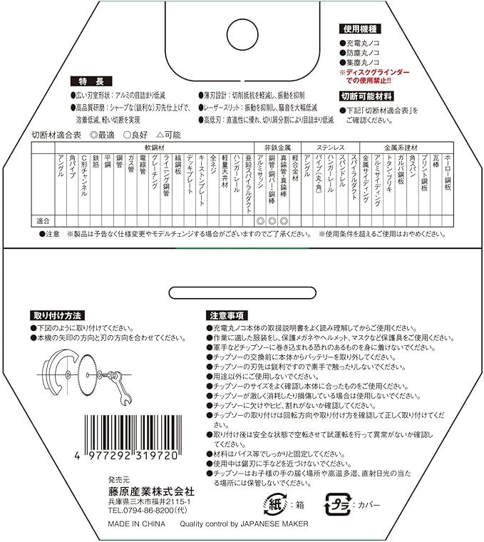 特徴:充電丸鋸のために設計されたニュータイプチップソーで、12V-40Vまで対応