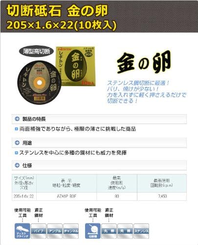 レヂトン 切断砥石 金の卵 205 1.6 22(10枚入)