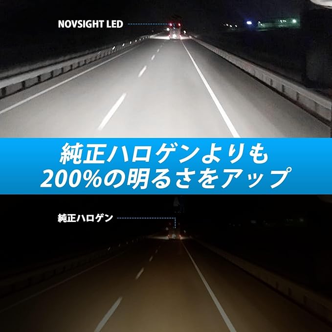 【高性能LEDチップ搭載】NOVSIGHT h11 ledヘッドライトは最先端の高性能LEDチップを採用したコストパフォーマンスに優れたH11 LEDヘッドライト。従来のledチップに比べて、安定性が大幅に向上した。6500Kのホワイトがおしゃれで視認性も抜群!圧倒的なホワイトの光で、お車もオシャレに大変身!圧倒的な明るさを実現し、明るさはハロゲンの2倍以上。高輝度LED電球に交換することで、広く明るい視野で夜間の安全運転をサポートする。