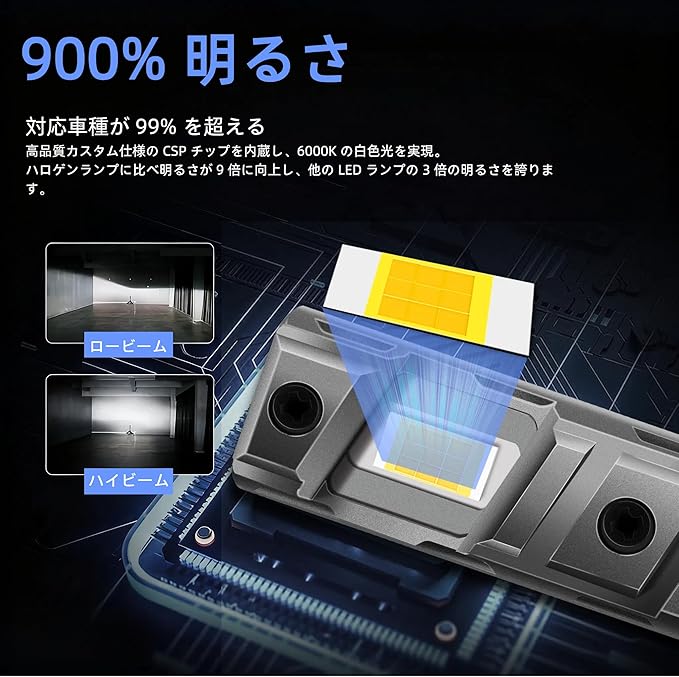【H11 LED車検対応 高輝度 ヘッドライト】 本品はh11 LEDバルブ専用設計。高品質CSP LEDチップを搭載し、従来のハロゲンランプ比で約8倍の明るさを実現。6500Kの純白光束が夜間の視界をクリアに照らし、運転の安全性を飛躍的に向上させます。