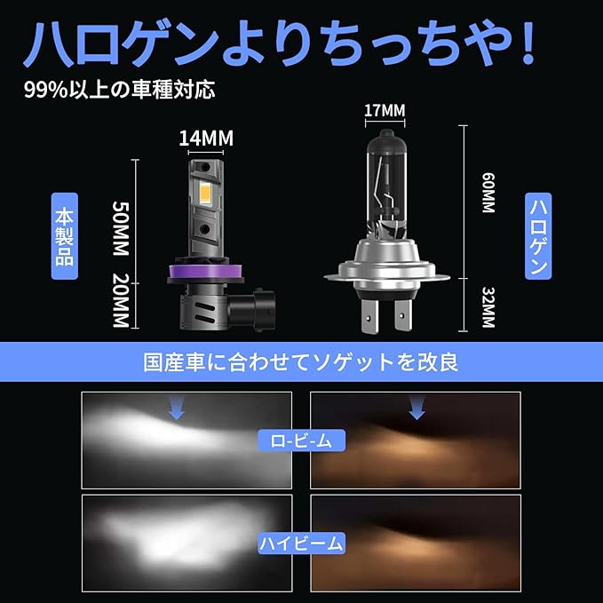 【純正1:1 ポン付け簡単取付】 このh11 LEDライトは、純正ハロゲンバルブと完全同一の1:1サイズ設計。DC9−32V車両に適用したもので。複雑な配線や車体改造は一切不要。無極性設計でプラグを差し込むだけの簡単ポン付け。誰でも短時間で純正交換が完了します。