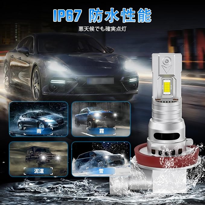 【ポン付け、取付簡単】コンパクトなオールインワンミニサイズで、かさばるベース不要、追加のドライバーも不要。プラグアンドプレイ対応で、マイクロ秒で点灯します。H11/H8 LEDヘッドライトバルブは極性があります。取り付け後点灯しない場合は、水平に回転させて再度お試しください。