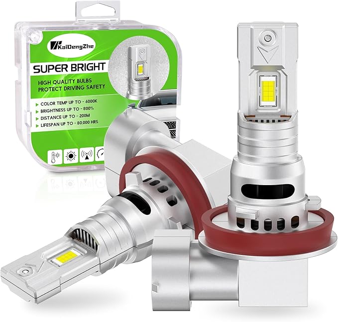 【より明るく安全な道路視認性】夜間の運転をより安全に。KaiDengZhe H8 LEDは、精密な360 ビーム(1:1ハロゲン設計と超薄型銅板)により、最大400%優れた道路視認性を実現します。暗闇のスポットや他者を眩惑する散乱光なし——ただクリアで集中した照明を提供します。