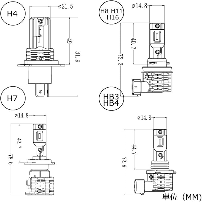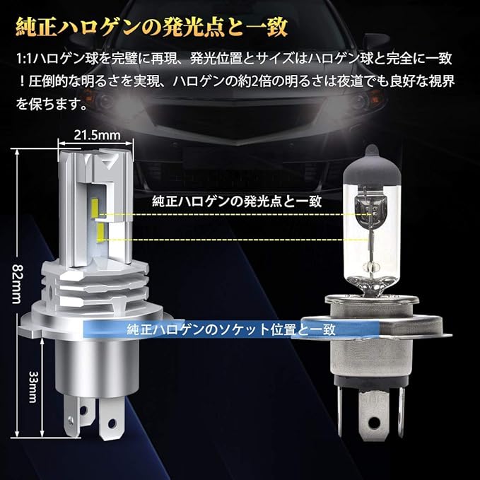 LEDヘッドライトは純正ハロゲン球に比べ明るく、光度と照射距離が約3倍!