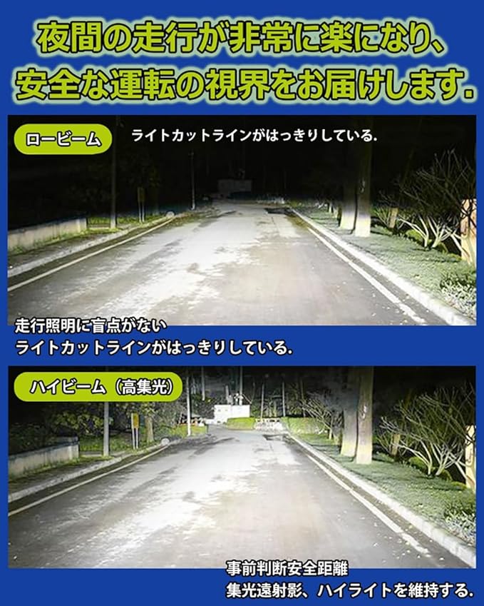 車の所有者が最も関心を持っている輝度とパワーパラメーターについて、当店が提供しているデータはいずれも実測値である。その輝度は市販の公称10000LM~30000LMのヘッドライトに劣らず。走行の安全性、ライトの安定性、寿命を確保した上で、輝度とパワーを総合的にバランスさせているため、所有者は安心して使用することができる。