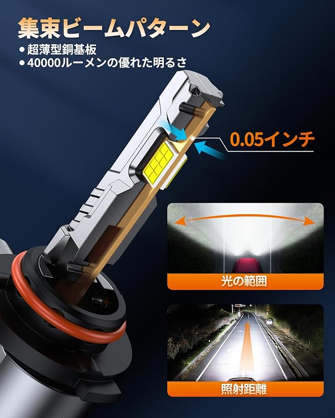 【新基準車検対応|キレイなカットライン】: 美しいカットラインにより、対向車に影響を与えず、優れた配光性能を実現しました。 ハイロービームの自在切り替えにより、ロービームは広範囲を照らし、美しいカットラインを保ちます。 ハイビームは中心部に均等に光が分布し、遠くまで視界を確保できます。 このLEDヘッドライトは新基準車検に対応し、美しいカットラインを備えています。対向車への配光を考慮しつつ、遠くまで明るく照らすことができるため、安全かつ快適なドライブをサポートします。