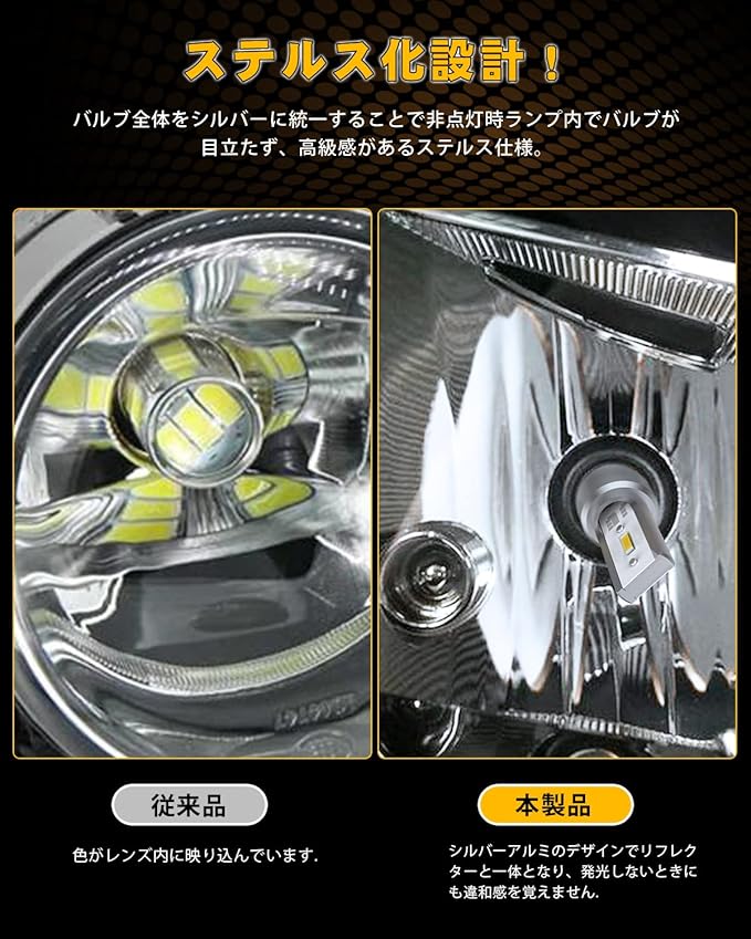 ★【高品質CSP1860SMD LED素子】純正発光を実現するヘッドライト!高品質 CSP LEDチップ採用、発光効率が大部アップ!ルーメン度が2000LM。抜群な明るさ、レモンイエローな色と360 光線角度で、視野範囲最大限に増やせます。