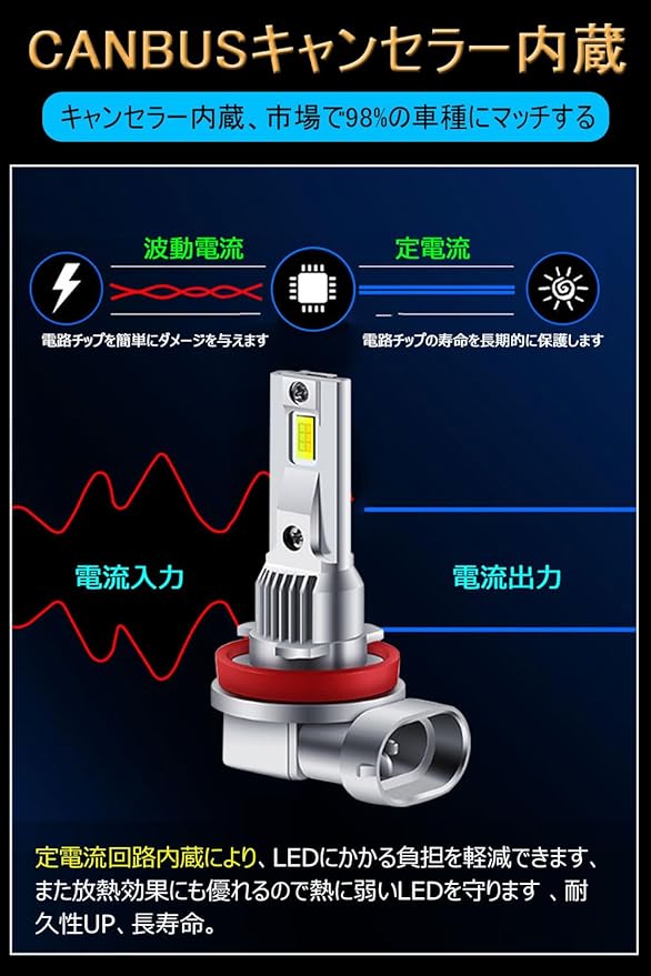 安全性高い、性能安定:この h11 led フォグランプ は高性能定電流ICドライバー搭載。EMC機能内蔵、点滅しない、FMは干渉しない。大部分車種はエラーフリー!(ご注意: ほとんどの車種で取り付け可能ですが、稀にバルブ裏の狭い車種等では取り付けできない場合がございます。念のため購入前に商品サイズをご確認ください。)