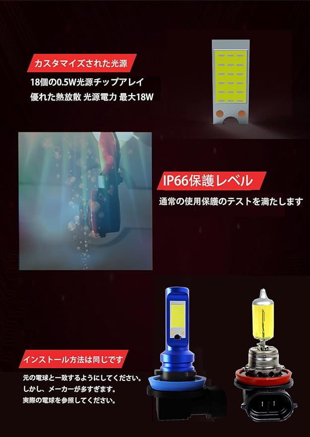 【互換プラグ】H11,H8,H9,H16バルブプラグ対応で、純正バルブの比率と同様にプラグアンドプレイが可能です。 省エネ、低消費電力、高輝度