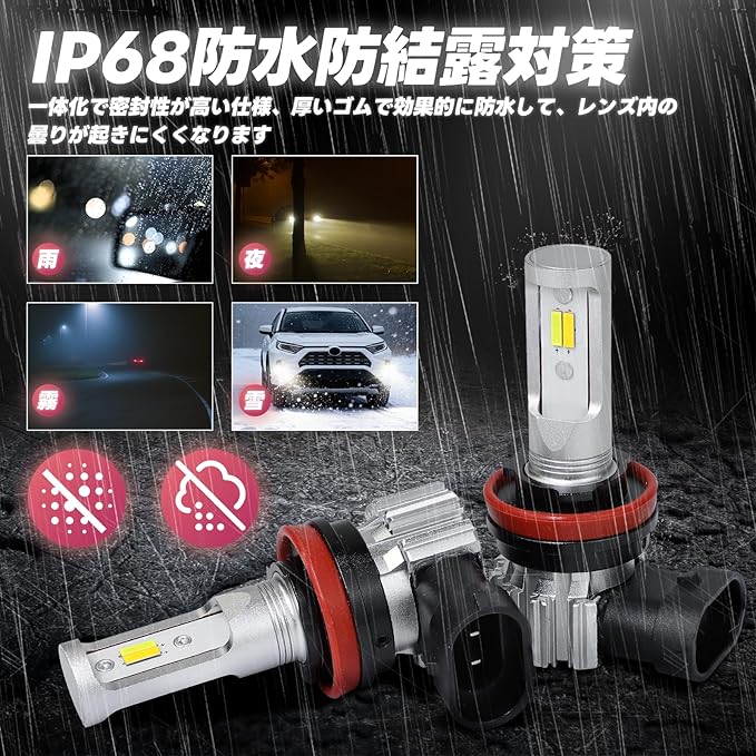LEDフォグランプ H8/H11/H16対応 2色切替式 (ホワイト/イエロー) 車検対応 IP68防水 結露防止 無極性設計 信頼性テスト 2個セット