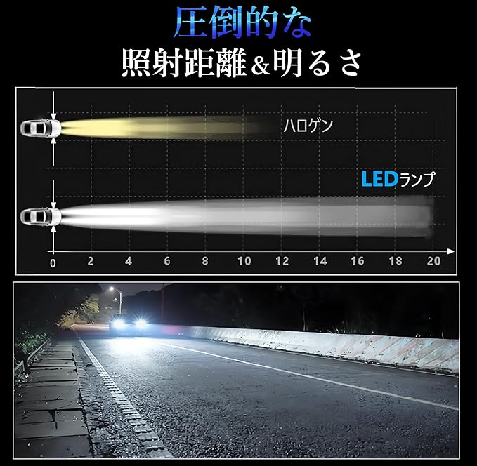 【綺麗な配光】多重影が無い伸びのある綺麗な配光 前方周辺を満遍なく照らし夜間運転の視野性を大幅にUP!