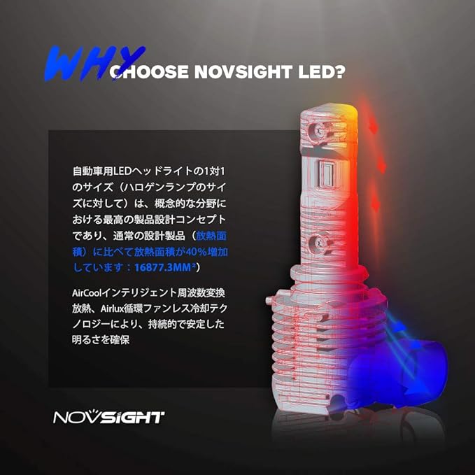 【NOVSIGHT業界で再度アップグレード版】 コンパクトの一体式なデザインを採用し、ハロゲンランプを完璧に切り替えることができます。ハロゲンボールが同じ位置で発光することを実現し、光軸を調整する必要がありません。完璧なビームモードがあり、安定した出力、黒い点や影のエリアがありません。もっと安全な夜間運転を実現します!純粋なハロゲン電球と比べて、明るさが300%を増やして、100%省エネになります。節電、耐久性に優れた逸品です。純粋なハロゲンランプのLED化を体験することに最適です!