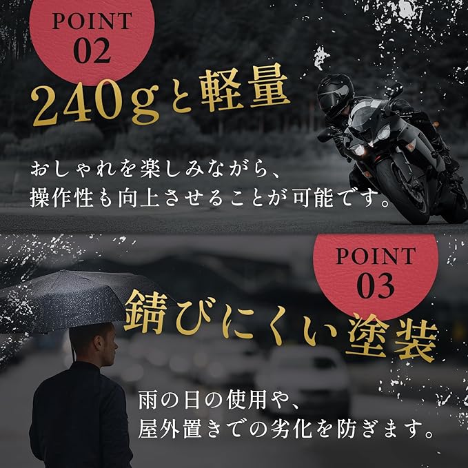 ✅適合車種(汎用タイプ)※必ず商品ページ・サイズも併せてご確認ください。 CB400/CB500/CB750/CB900F/CB1000/CBR250R/CBR500R/CBR600RR/CBR900RR/CBR1000F/CBR1000RR/CB1300/CB1300SF/VFR800/VFR1200F/VTR1000F/MSX125/NSF100/NSR50R/GROM/RVT1000R ✅【足元から、走りの印象を変える。】バイクステップはスポーティーなデザインと高い機能性を両立した汎用フットペグです。アルミ製の軽量ボディに鮮やかなブラックカラーを採用し、愛車の足元をスタイリッシュに演出。カスタムパーツとしての存在感も抜群です。 ✅【長距離ほど実感する、安定感アップのフットペグ】しっかりとしたグリップ力で足の滑りを防止し、安定したライディングをサポート。ロングツーリングでも快適な足元を保ち、見た目だけでなく操作性や踏み心地にもこだわった設計です。交換も簡単で、気軽にカスタムを楽しめます。 ✅【街乗りもツーリングも、足元から気持ちよく】街乗りはもちろん、高速走行やツーリングシーンにも最適。タンデム走行時の安定感アップにも効果的で、カスタム初心者の方でも手軽にドレスアップが楽しめます。 ✅【足元の存在感で愛車が一気に変わる】足回りをおしゃれにカスタムしたい方や、純正ステップのデザインに物足りなさを感じている方におすすめ。軽さと強度のバランスが良く、愛車をより個性的に仕上げたいライダーにぴったりです。