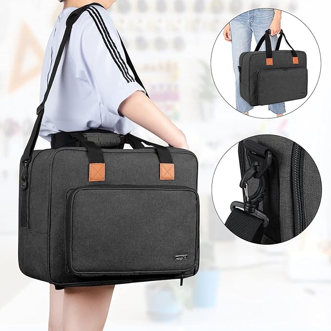 Luxja ミシン用トートバッグ 裁縫アクセサリ収納可能 クッション性 ポータブル(黒)