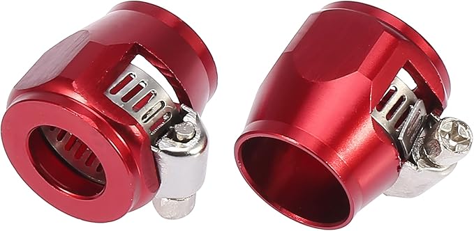 X AUTOHAUX AN8カーホースフィニッシャークランプ エンドフィニッシャークランプ ウォーターラインクリップ 六角 ラバー ねじバンドアダプター継手付き 2個入り 赤