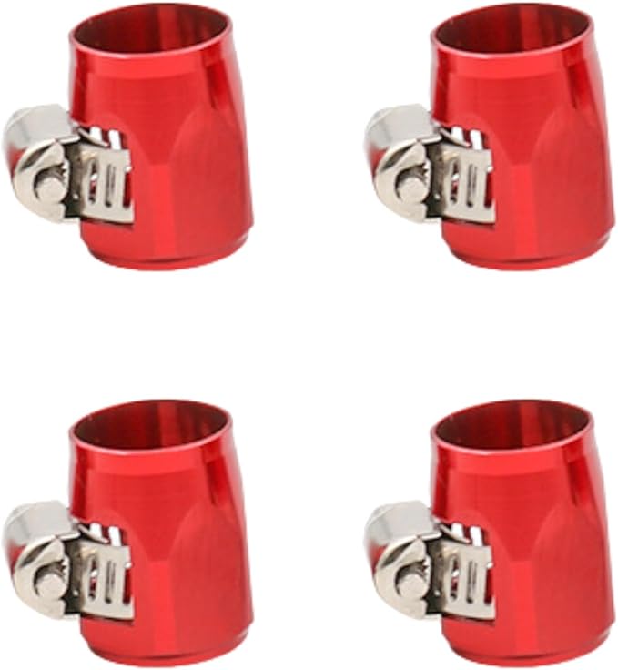 エコノフィッティング ホースエンド フィニッシャー クランプ スクリューバンド ラジエーター ホースバンド ステンレスメッシュ オイル漏れ防止 アルミ合金 (赤, AN6)