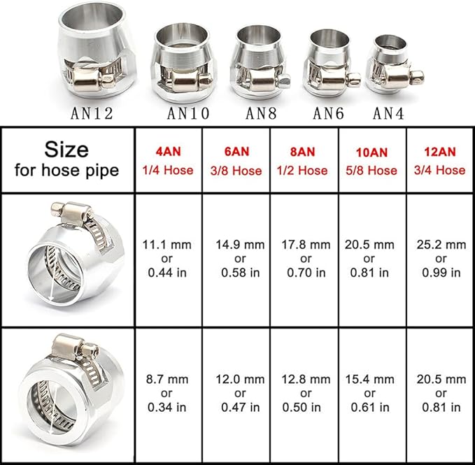 ノーブランド品 4ピースの長持ちコンポーネントアルミニウム六角ホースフィニッシャークランプ - 取り付けが簡単で強力なホースエンドフィニッシャー, 銀, AN6.4本