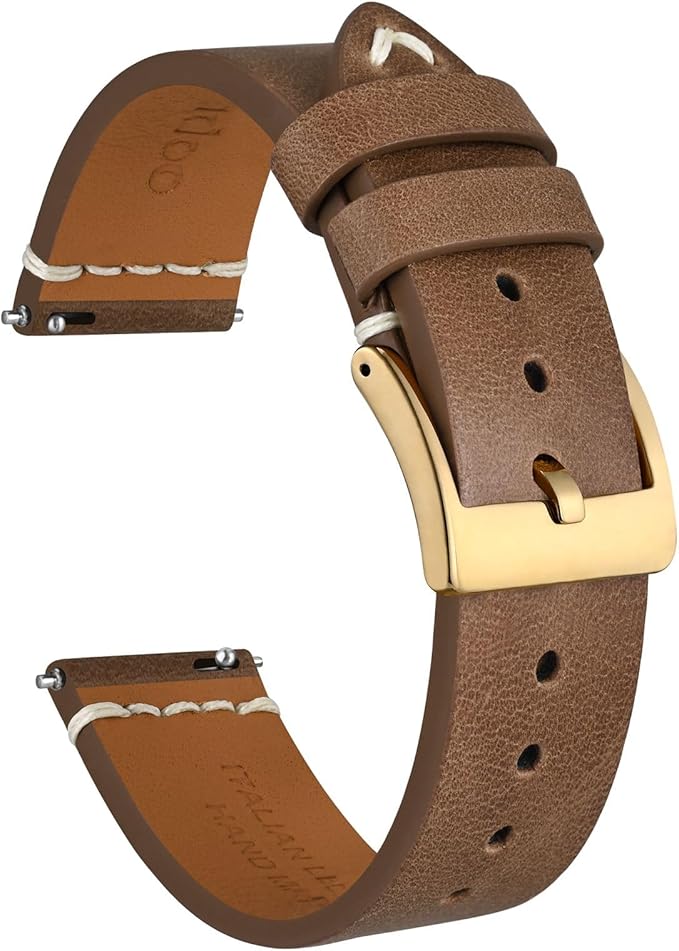 [Ayadoo] 腕時計バンド 18mm 20mm 22mmイタリアレザー時計バンド、Quick Releaseレトロレザー交換ベルト、ステンレススチール尾錠