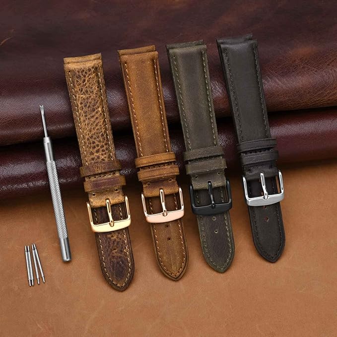 [WOCCI] 本革時計バンド 18mm 19mm 20mm 21mm 22mm 23mm 24mm カーフレザー 腕時計交換ベルトブラウン 調整工具とバネ棒付き