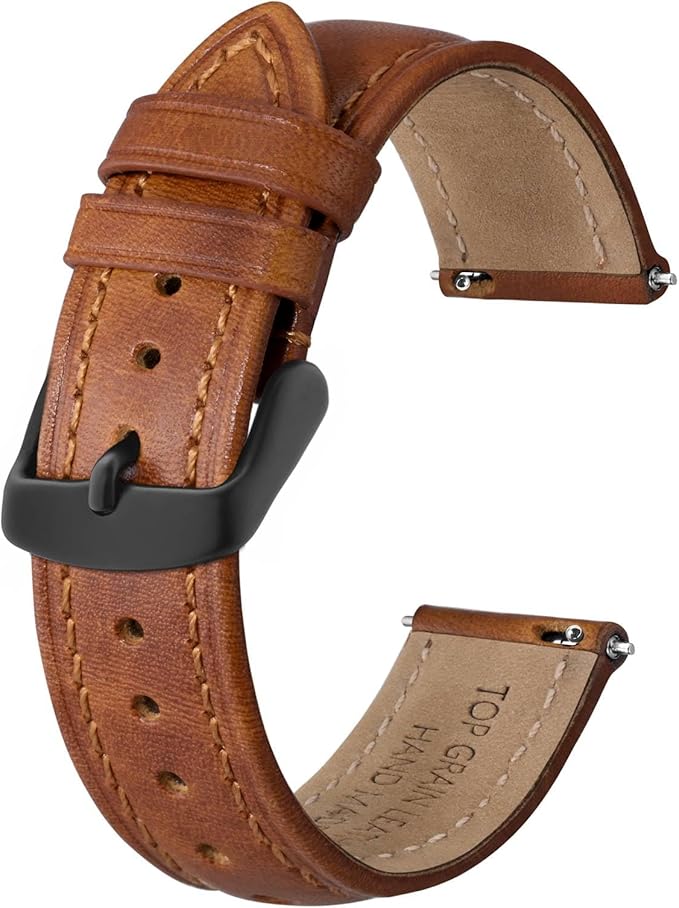 [BISONSTRAP] 時計ベルト 18mm 19mm 20mm 22mm 時計バンド レザー 交換バンド レトロ替えベルト Quick Release ステンレス製尾錠