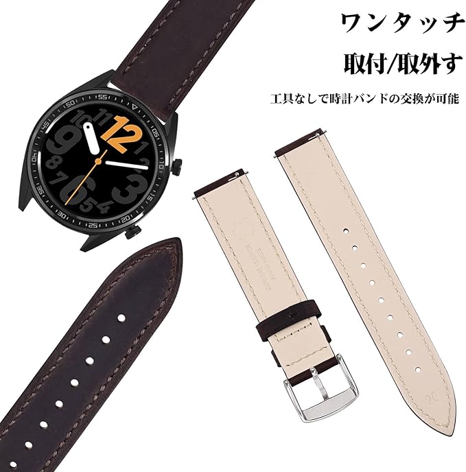 [ANNEFIT] 本革時計バンド 18mm/19mm/20mm/21mm/22mm スエードクレージーホースレザー腕時計替えベルト Quick Release