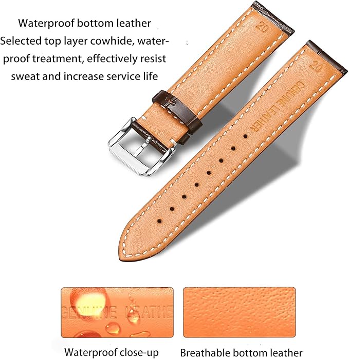 【高品質】100%レザーストラップ - 高品質のソフトレザー、スタイリッシュ、防水、防汗。 クイックリリースデザインにより、数秒で素早く簡単に時計ストラップを交換できます。 クイックリリーススプリングレバーがストラップに取り付けられています。