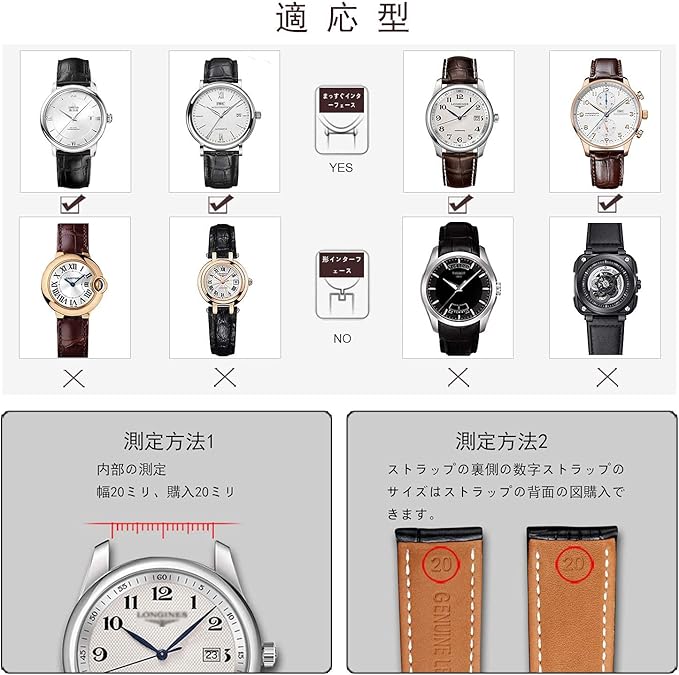 【腕時計のセレクション】: クラシックなデザインスタイル。高級時計用に作られており、従来の腕時計やスマートウォッチと互換性があります。 セット内容:1個-316Lステンレススチールバックル + 本革時計バンド; スプリングバー4個; スプリングバーリムーバー1個; インストールマニュアル1枚; ワイプクロス1枚