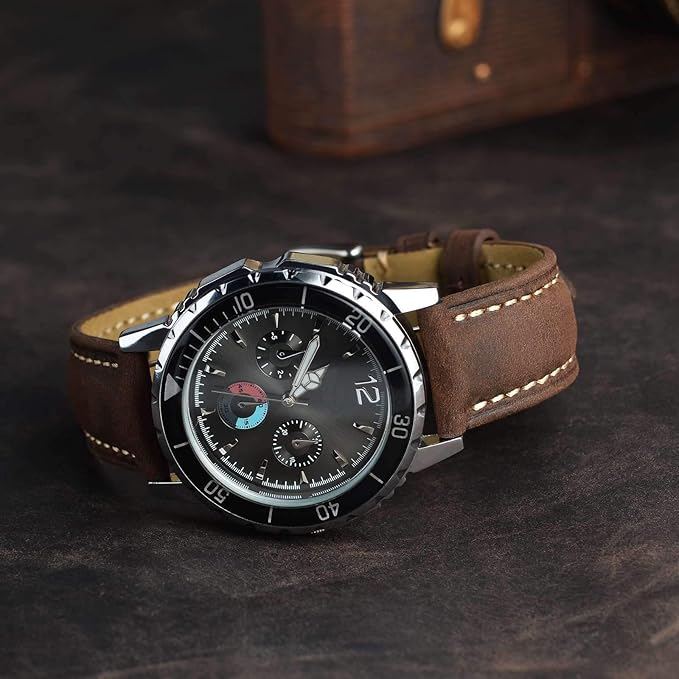 【厳選された素材】クレージーホースレザー(crazy horse leather)より作られ、なめらかな触り心地としな やかな弾力で、使い込むほどに腕に馴染み、快適なつけ心地を実現します
