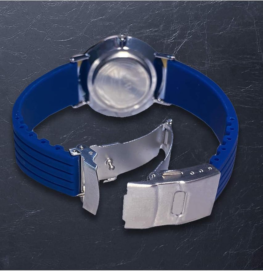 【厳選した素材】バンド自体は撥水性持ちのシリコンラバーです。防水、防汗、通気、超耐久性が特徴です。留め具はDバックルの他にまた二重ロックを搭載した安心設計です。タイピングの途中にもバンドが外れることは一切ありません。