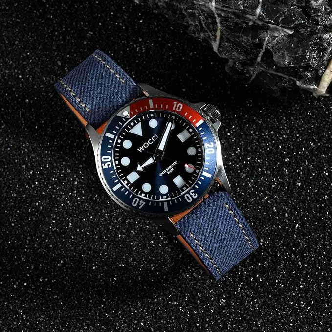 [WOCCI] 時計ベルト 本革 18mm 20mm 22mm 腕時計バンド デニムパターン イタリアンレザー替えベルト