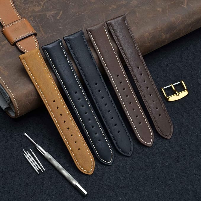 [WOCCI]時計ベルト24mm替えベルト ヴィンテージ 本革腕時計バンド 黒 ゴールドバックル
