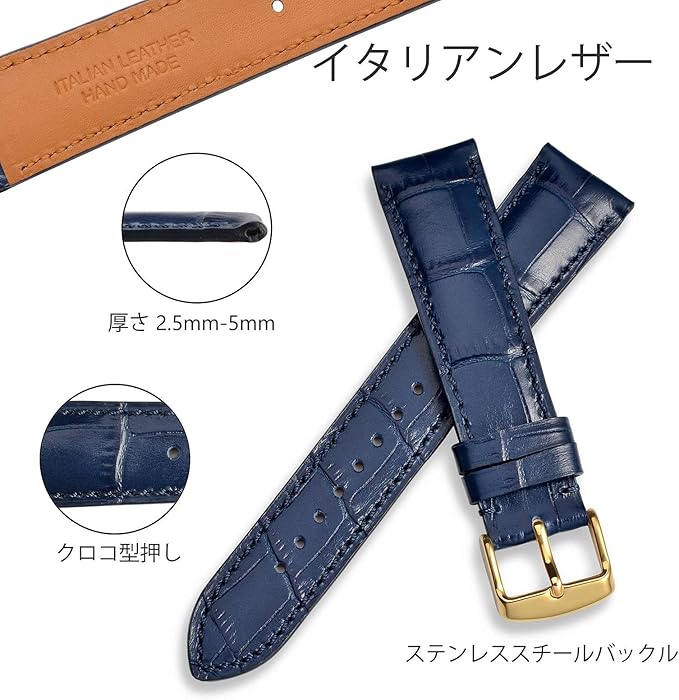 [WOCCI]本革時計バンド14mm 18mm 19mm 20mm 21mm 22mm イタリアンレザー クロコ型押し腕時計替えベルト