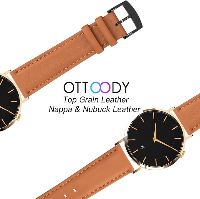 クラシックでエレガントで豪華なデザイン: OTTOODY 時計バンドは、優雅さ、機能性、魅力を重視して細心の注意を払ってデザインされており、より良い着用快適さを提供します。 私たちは、厳選されたトップグレインレザー、豪華なステンレススチールの金具、縫い糸などを含む、時計ストラップが当社の高品質基準を満たすように努めています。さらに、デザイナーは特に中間層、テーパー、斜めのパッドのデザインを使用して、 時計ストラップは防湿性と耐久性があり、エレガントで豊かで柔らかいです。