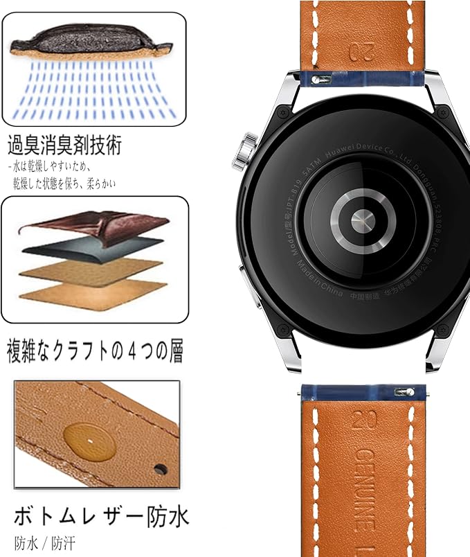[Moran] 本革時計バンドクイックリリースポリッシュ展開Dバックル、男性女性用,18mm-24mmカーフレザー交換用時計ストラップ、防水、防汗